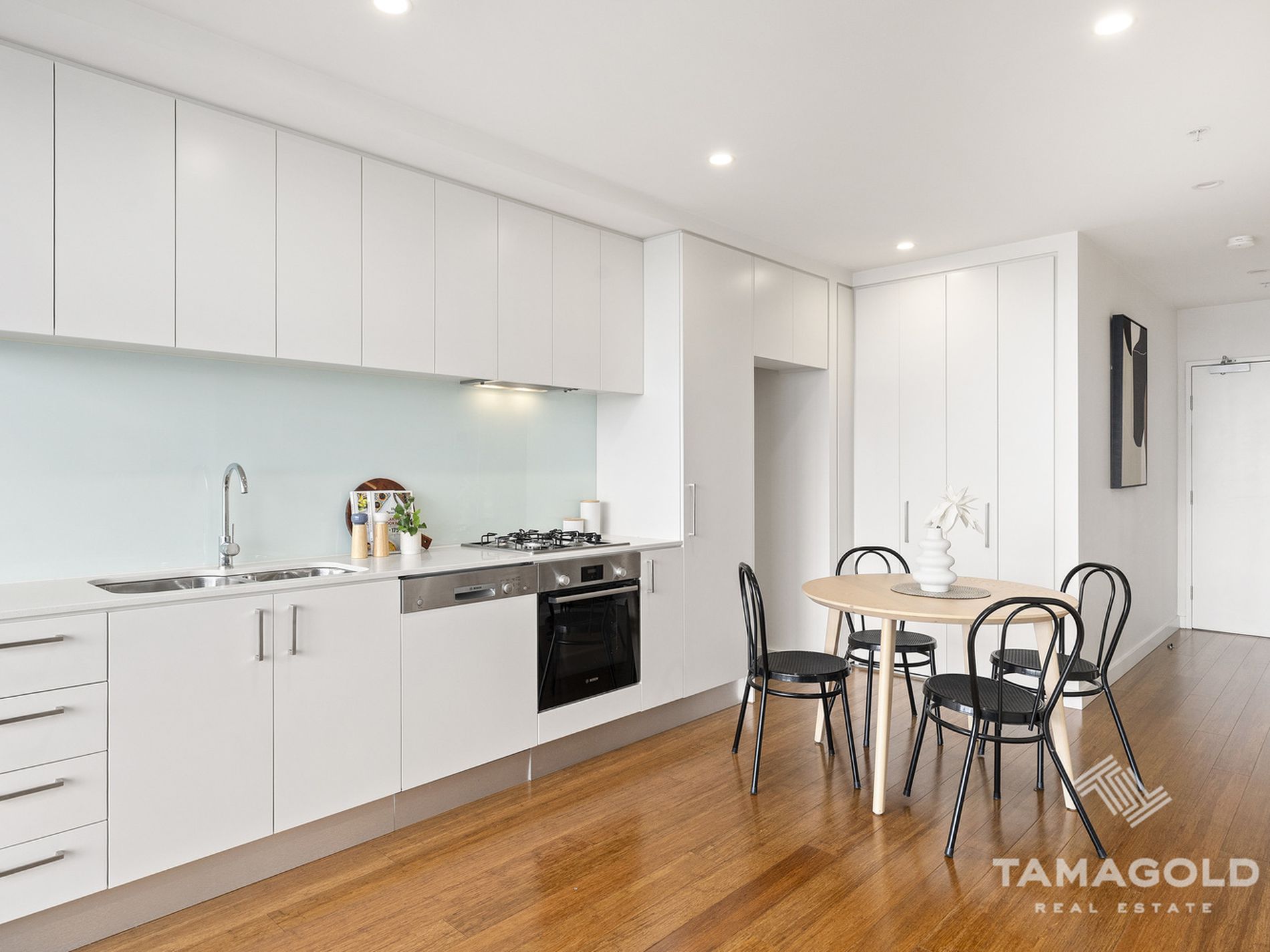 Upon entering you are greeted with engineered timber floors and an open plan living/dining with breathtaking views. A generous bedroom with mirrored robes, large bathroom, streamlined kitchen with stone benchtops, Bosch appliances, gas cooking, ample cupboard space and semi-integrated dishwasher. An open plan with separate living and dining draws your attention to the Melbourne CBD skyling through the large windows leading to a balcony, ideal for unwinding an taking in the glittering backdrop.