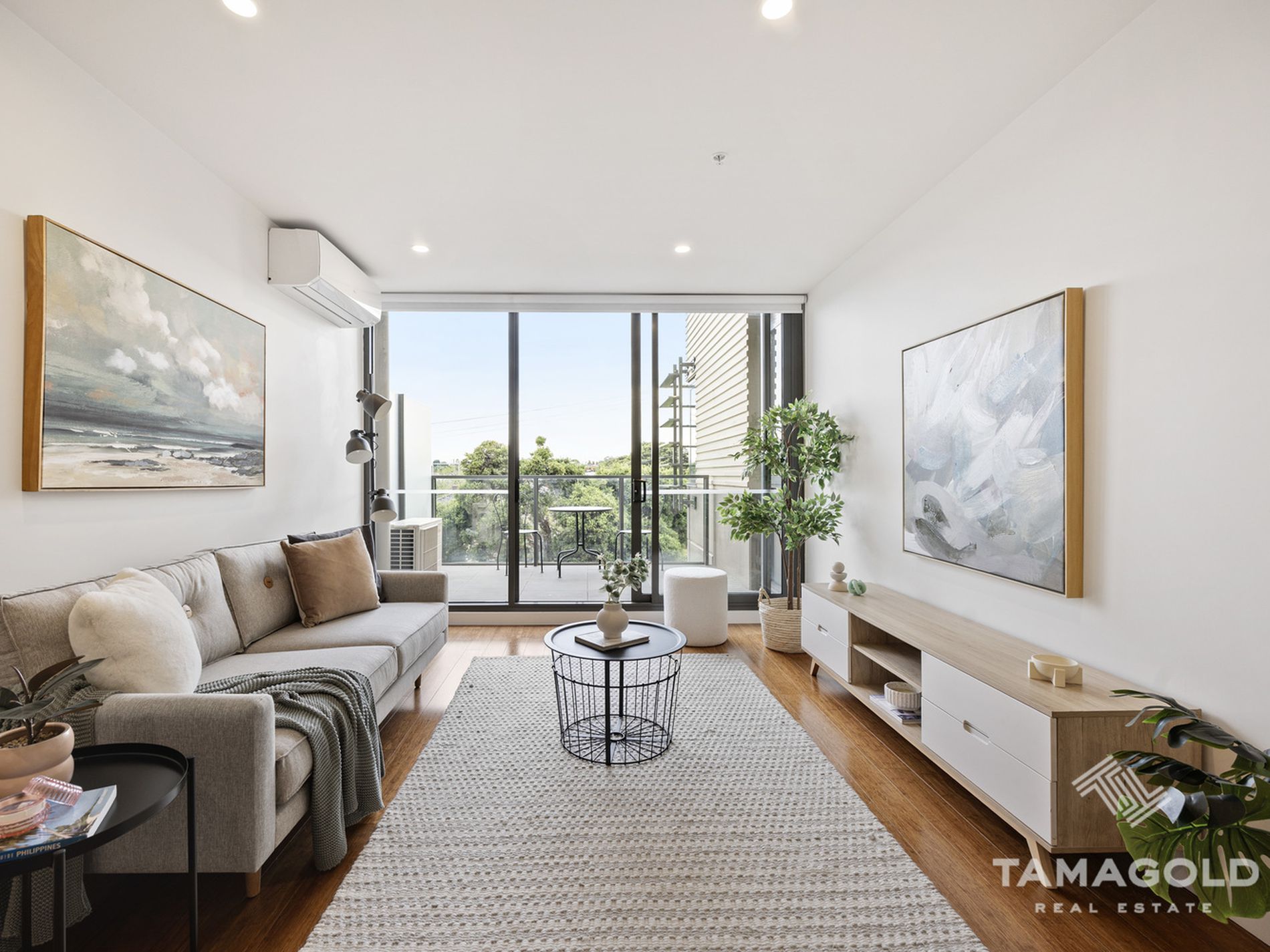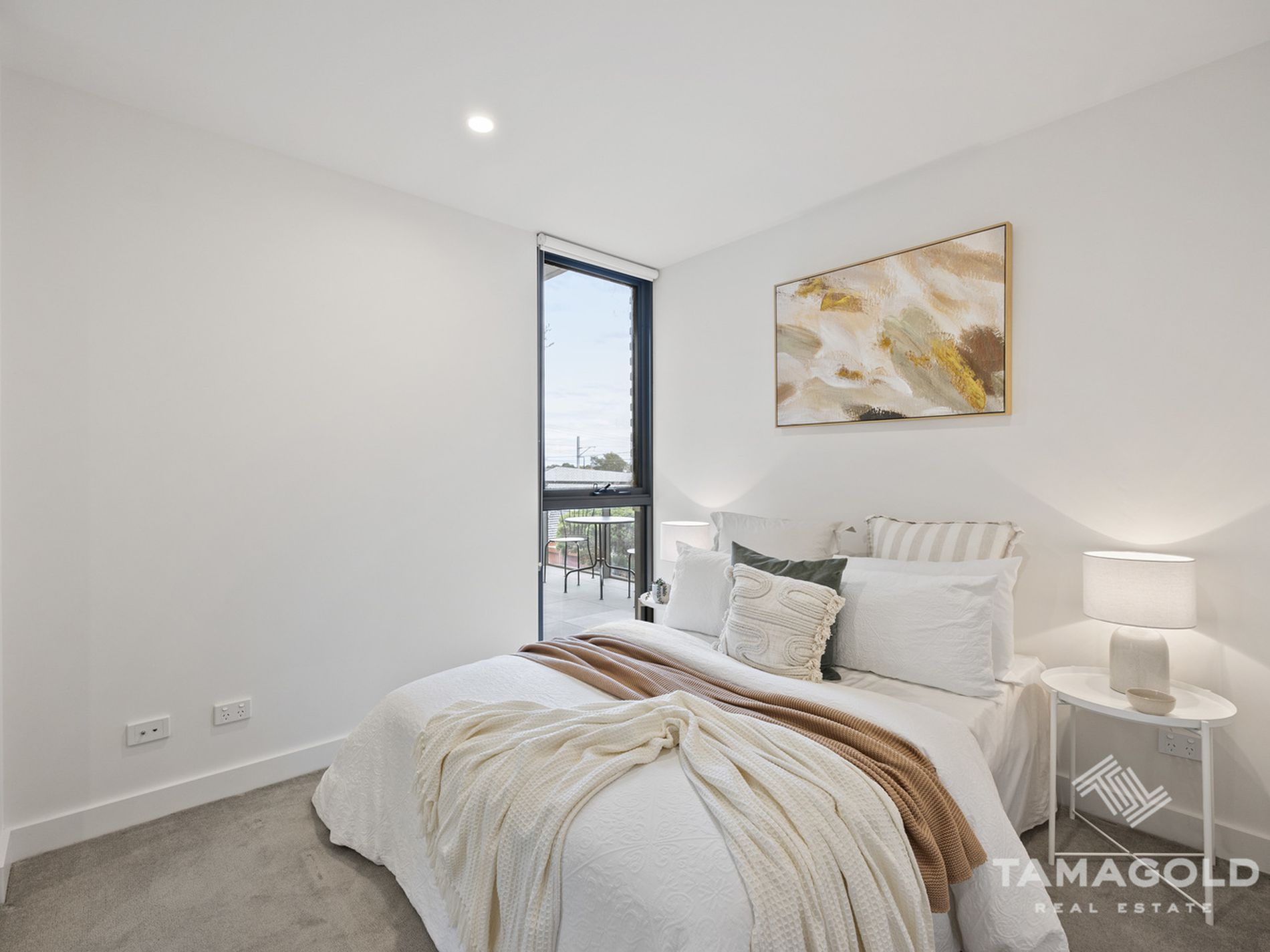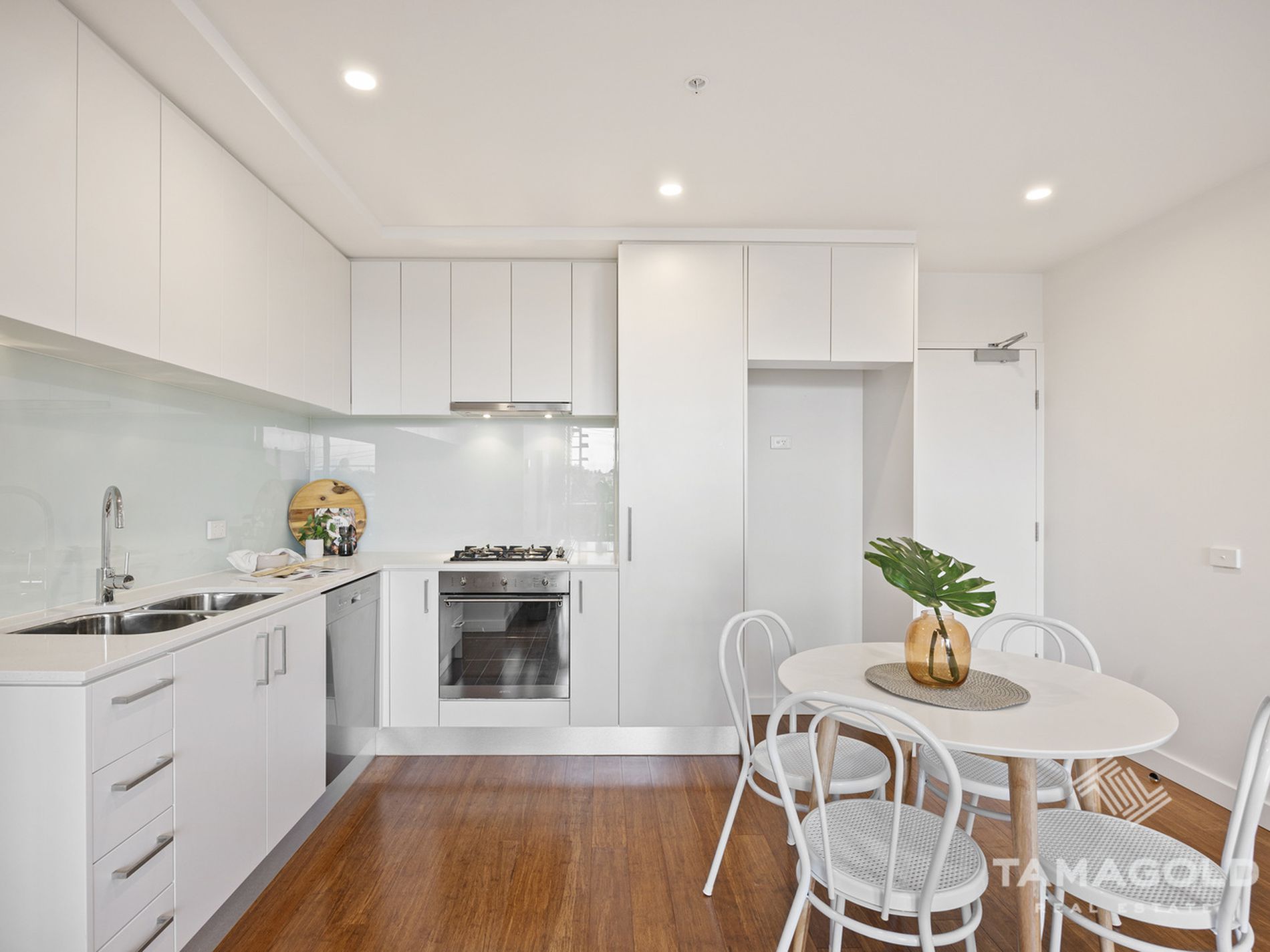 Bathed in natural light thanks to its northern position, the open-plan meals/living area connects seamlessly to an outdoor balcony ideal for entertaining. The chef's kitchen boasts Smeg appliances, semi integrated dishwasher, glass splashback, and ample storage with sleek cabinetry. Both bedrooms are thoughtfully designed, with mirrored built-in robes, carpet while the main bedroom enjoys a luxe ensuite.